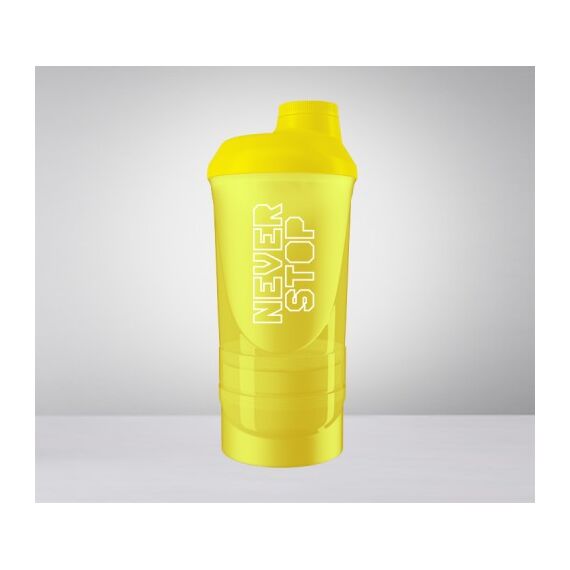 U pitanju je rasklopivi šejker koji pored standardne mrežice za lakše rastvaranje vašeg omiljenog suplementa sadrži i dodatnu posudu. Često na trening vežbači ponesu proteinski prah kako bi napravili šejk po završetku, ali isto tako ponekad nam je potreban i kreatin, glutamin, NO reaktor... A ne možemo sigurno sva pakovanja da ponesemo sa sobom.