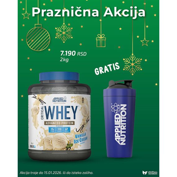 Whey protein koncetrat je dobijen tehnologijom Ultra filtracije kako bi zadržao visoku koncetraciju proteina i BCAA (amino kiselina razgranatog lanca). Whey protein izolat je protein najvišeg kvaliteta dobijen Cross-Flow-Micro filtracijom. Hidrolizovani Whey protein je enzimski predsvaren protein, razbijen tim putem do Peptida. Critical whey sa svakom mericom donosi 21g proteina dobijenog od mleka krava hranjenih travom, sa prirodno prisutnih 4,8g BCAA i 4g Glutamina. Critical Whey je proizvod sa prirodnim aromama, bez glutena, sa niskim sadržajem šećera, odlične rastvorljivosti i konzistencije. Samo dodajte u vodu ili niskomasno mleko i uživajte u šejku odličnog ukusa.