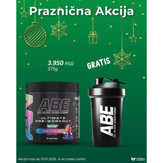 Sa svojim jedinstvenim sastavom, ABE preparat za pre treninga doprinosi povećanju snage, energije i izdržljivosti. Osim toga, ova specijalna formulacija pomaže da se maksimizira pun telesni potencijal, kroz doprinos u kontinuiranom fokusu u toku aktivnosti. Povećava motivaciju i mentalnu oštrinu uz istovremenu neverovatnu pumpu. Međutim reči ne vrede same ništa i dokaz je u samom proizvodu. Nakon opširnih istraživanja, pedantnog formulisanja i preciznih laboratorijskih analiza, osećamo se samouvereno da dozvolimo da ABE priča sam za sebe.